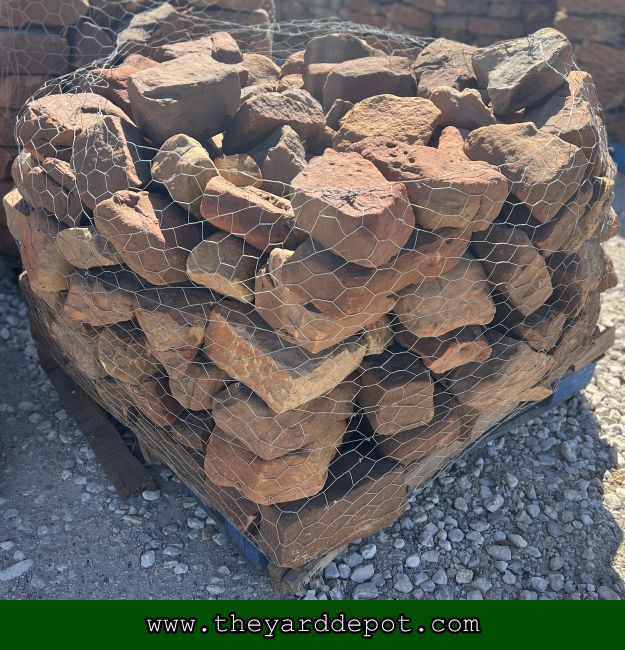 ~Native natural Texas Rock; sandstone type that is usually a brown/reddish color. It also varies in size, shape, and thickness.